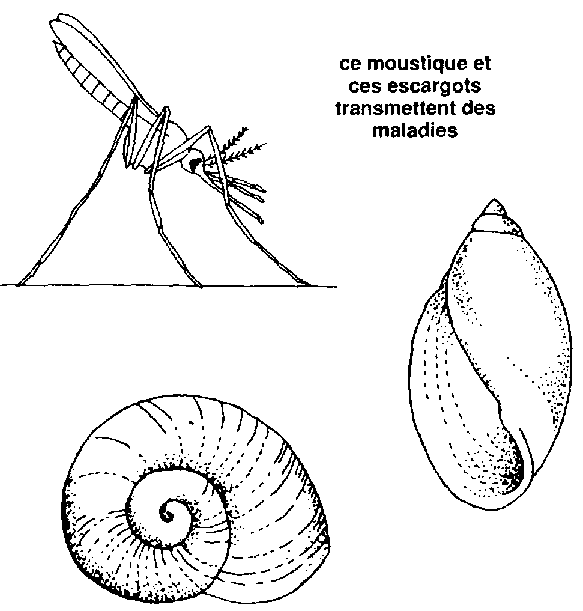 534 Une certaine espèce de moustique et quelques espèces d'escargots d'eau douce transmettent des maladies qui peuvent vous rendre très malades