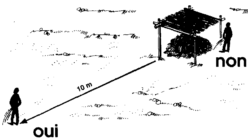 540 Ne faites jamais vos besoins sur le tas de compost ou à proximité. Utilisez votre latrine ou écartez-vous d'au moins 1 0 mètres.