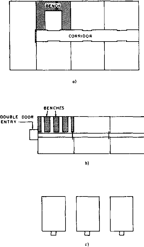 FIGURE.106 Three designs for the layout of plant laboratory greenhouses
