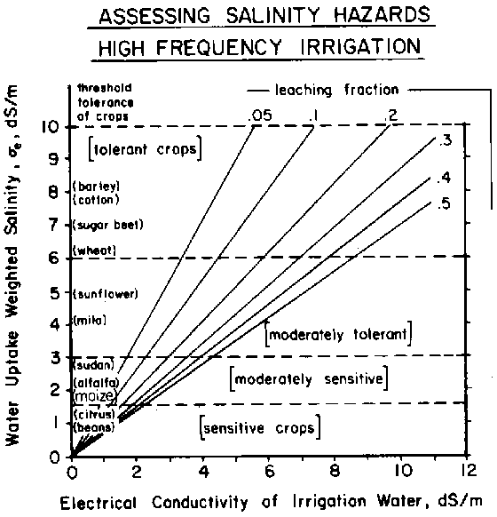 are given in terms of soil water at field capacity, some conversions in units are required before acceptability is evaluated. These various measures of salinity can be reasonably put on an equivalent basis for comparison using the relations: