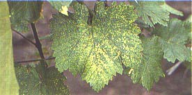 FIGURE 104 Scattered yellow spots in a European grape leaf, typical of yellow speckle infection