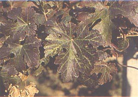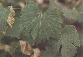 FIGURE 118 Foliar reactions of V. rupestris to asteroid mosaic infection