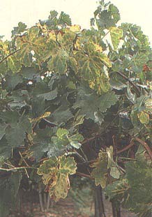 FIGURE 131 Leaf yellowing and drying up of bunches in a vine affected by bois noir (Photo: G Granata)