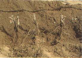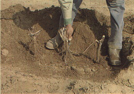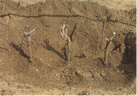 FIGURE 194 Soil around candidate vines is removed to expose crown roots