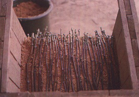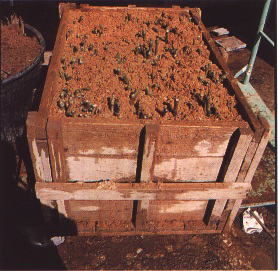 Grafted dormant cuttings are stratified in a box with moist sawdust or peat moss (Figures 226 to 228) and placed in a hot room at about 30°C for callousing. When callousing is completed all around the graft union (usually within four to five weeks) (Figure 229), the boxes are placed in a cooler, well-lit room or in an open shed for three to four additional weeks for hardening-off of grafted roofings (Figure 230) before transplanting in the field.