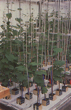 Herbaceous cuttings (18 to 35 cm long and 1 .5 to 2.5 mm in diameter) are collected from grape indicator varieties and grown either in a mixture of soil compost, sand and peat (1:1:1) or on rockwool cubes (Figure 237) watered twice a week with the following nutrient solution (Huglin end Julliard, 1964):