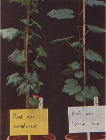 FIGURE 241 Leafroll symptoms shown by a green-grafted indicator (left)