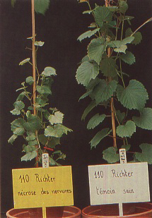 | 110 R ( Vitis rupestris x Vitis berlandieri) | Vein necrosis |