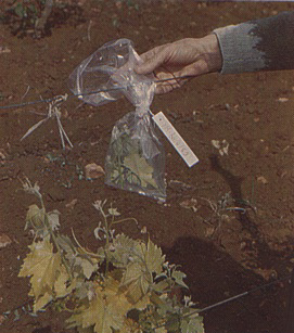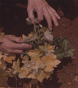 FIGURE 247 Shoot tip from a symptomatic vine being cut away for collection