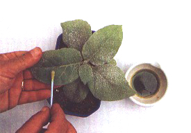 FIGURE 258 Inoculation by gentle rubbing of the inoculum on the leaf surface with a cotton swab