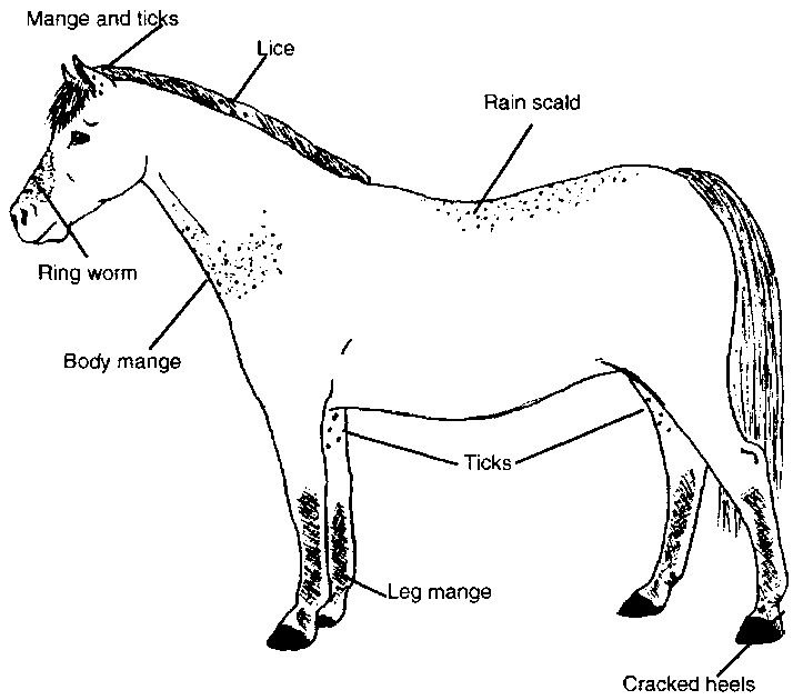 Badly fitted saddles, collars, hobbles and girths will result in wounds which develop into sores. A badly fitted saddle will result in saddle sores and an ill fitted girth results in the development of girth-galls. The hair will be rubbed off and a wound develops which will become infected.