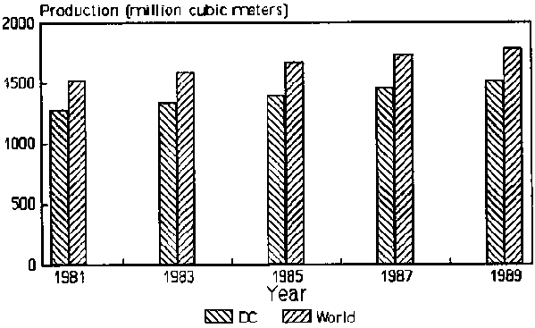 Figure 3. World Fuelwood and Charcoal Production for Various Years