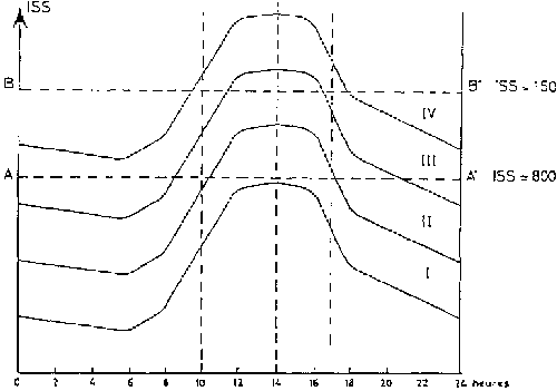 * La courbe I correspond à une date trop précoce puisqu'à aucun moment de la journée les conditions de combustibilité suffisante ne sont réunies.