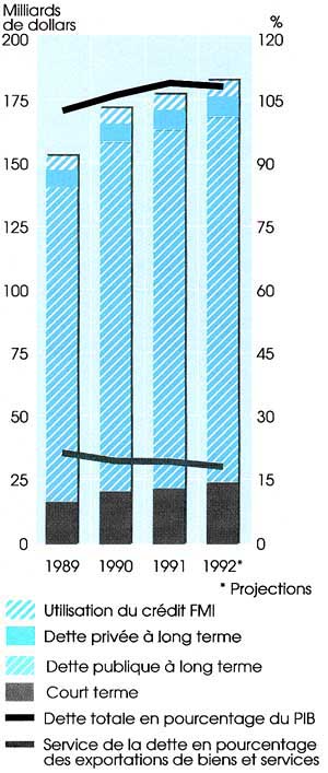 ** Ex-URSS compriseTABLEAU 1Source: Banque mondiale, Tableaux de la dette mondiale, 1991-92