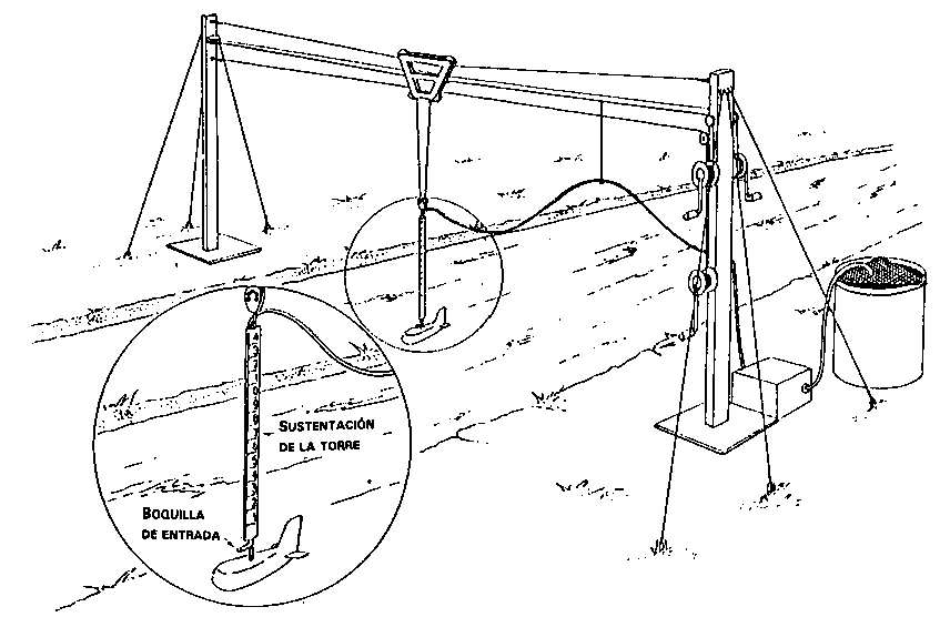 FIGURA 41 - Dispositivo para muestreo simultáneo en la superficie de la corriente y en profundidad (de Pereira y Hosegood 1962)