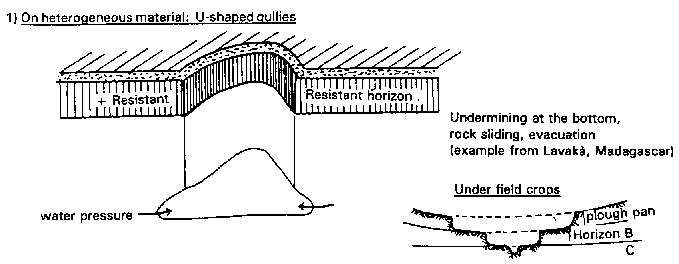 1) On heterogeneous material: U-shaped gullies