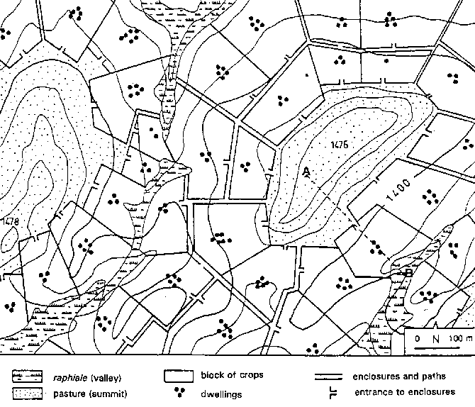 FIGURE 67 Traditional use of space (large-scale map of one section of the granite plateau)