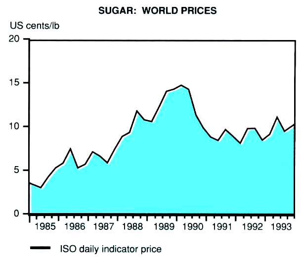 1993, world sugar prices had reached their peak for the year
