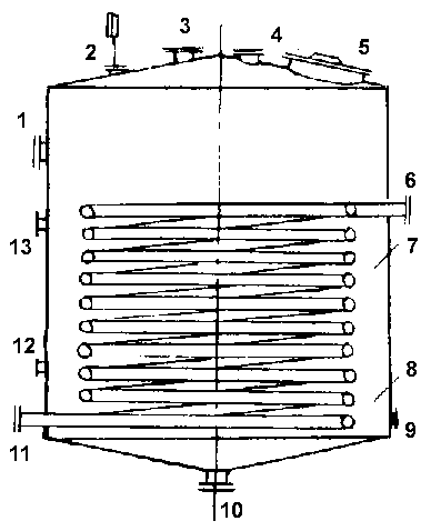 The No.5 tank was designed in terms of fermentation technology of raw starch. It possesses stirrer, cooling coil, inlets for steam and aseptic gas, etc... When fermentation technology of fixed-yeast biological reactor is implemented, the three tanks are used to store cool juice. When fermentation technology of neither steaming nor Boiling is carried out, the tanks are provided for stirring, saccharifying and fermenting. Here, heating and sterilizing tank may be used to activate highly active dry yeast.