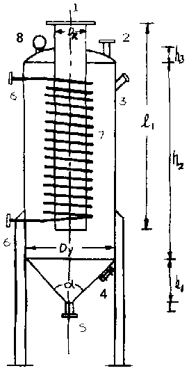The structure of gas-liquid separator is shown in Fig.4.3.15. The role of gas-liquid separator is to make the thin alcohol to sink further inside it for recovering. According to experimental data, several experimental formulas are given as follows.
