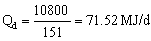 The supplemental energy required by duty room is 6800MJ during heating period and the average daily value is: