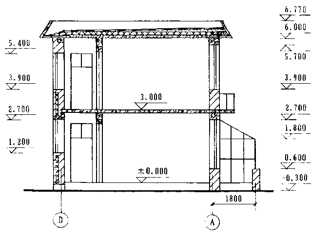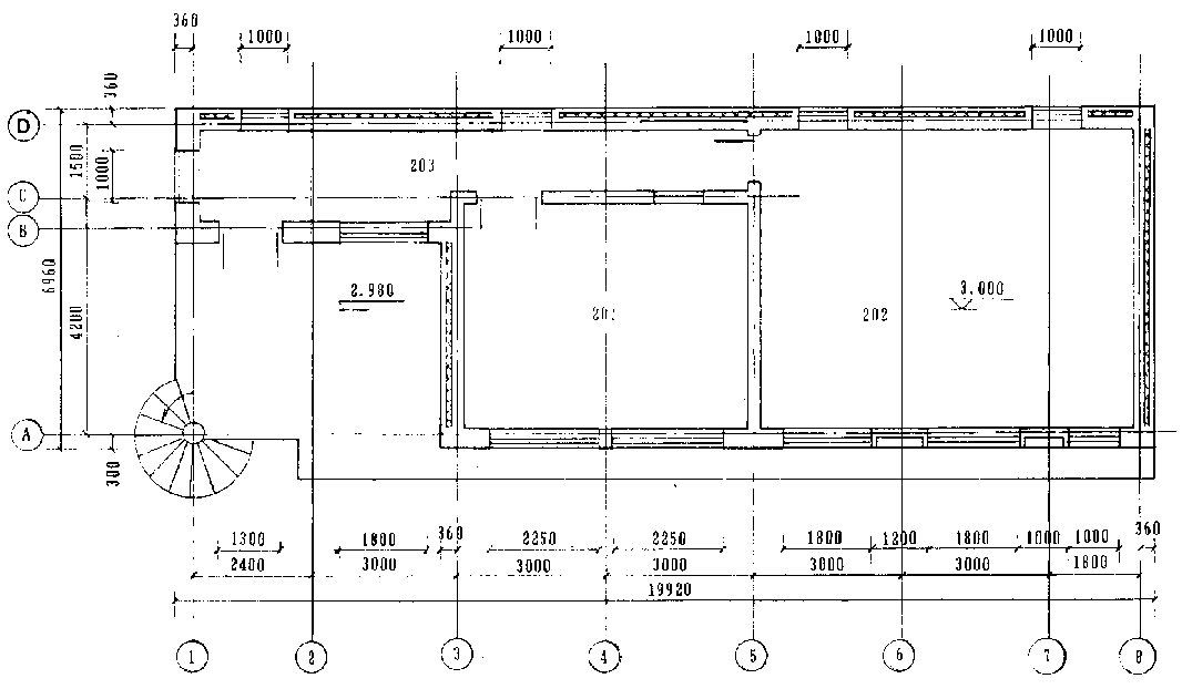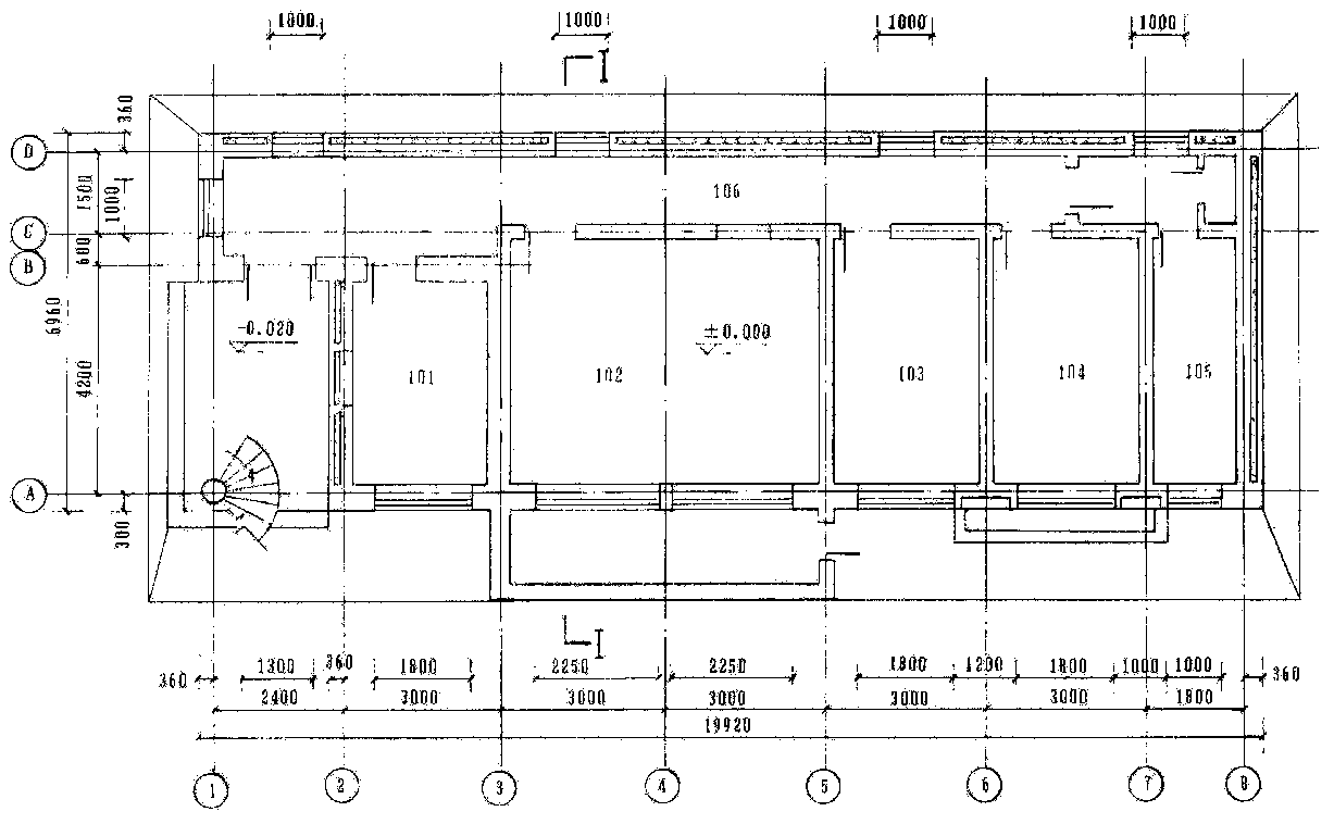 - Layout and the number of rooms: the south rooms on the first floor are numbered 101-105 from west to east respectively and corridor 106; the south room on the second floor are numbered 201 and 202 from west to east and corridor 203.- Story height and room length: story height is 3m; the length of 101 is 4.2m and 202 6.3m, the others 4.8m.