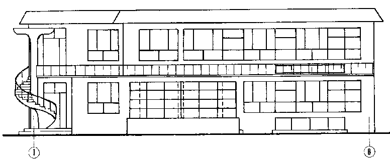 Roof: the materials from top to the ceiling are 3 layer asphalt felt covered with pea grit; 0.02m cement mortar; 1: 8 cement and furnace cinder with 2% slope; 0.20m precast pearlite blocks; vapour barrier; precasted reinforced concrete hollow slab (Fig.8.6).