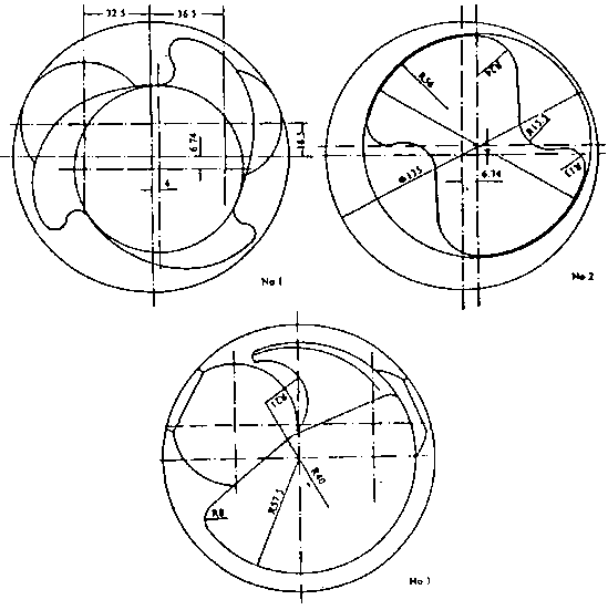 The combustion process at open chamber is very sensitive to homogeneity of the mixture which depends entirely on air motion. Attempts were made by this author to consider both by swirl (preliminary) induced by inlet mixture and squish (secondary). The latter is a compression induced air motion caused by a small clearance space at top part of the piston. Three kinds of improved combustion chamber were designed to strengthen the squish effect (Fig 2). The depth of No.1, No.2, No.3 combustion chamber designs was 30 mm, 27 mm, and 28 mm respectively. Engine performance was conducted upon two cylinders but running on a single cylinder to save gas. Tests which were carried out under the same compression ratio 11 indicated that all the improved designs were successful. An example of No.1 design is given below. Three spiral form inclines from the top to the bottom part of the combustion chamber inside the piston were uniformly arranged around the cycle of the No.1 combustion chamber. Evidently, rotary direction of spiral inclines should be coincide with those of the induced air motion. Smooth running at the speed of 1500 rpm of the gas engine with No.1 combustion chamber is obtained. Nevertheless, in the gas engine with the original design sharp detonation appears at a speed of 1000 rpm. Improvement in energy consumption Q and thermal efficiency Ç e when using gaseous fuel at heavy load was shown in (Fig 3). The Optimal Value of Q of No.1 design was 4.81 J/w-s, comparing to 5.2 J/w-s of the original one, but conversely at light load. The change of thermal efficiency Ç e has the same trend as that of the optimal value Q.