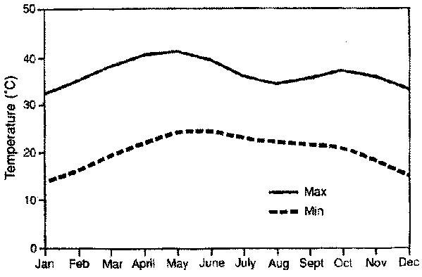Data were obtained from the Nisheishiba Farm of Gezira University, located in the central part of the Sudan, latitude 14°24' N, and longitude 33°29' E. The climatological data on rainfall and temperature are given in Figures 1 and 2. There are three distinct seasons in the year, based on rainfall and temperature: winter (November-February), dry summer (March-June) and wet summer (July-October).