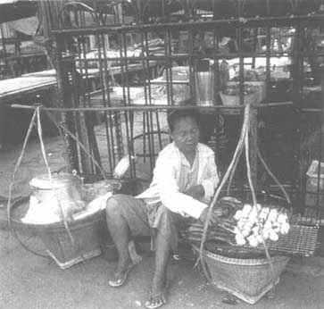 Consumers who are attracted by convenience and low prices may overlook aspects of hygiene or sanitation. In some cases, these customers lack an understanding of proper food-handling practices and the potential for foodborne diseases. A joint Netherlands/Indonesia research project on street foods (1988-1992) reports that chemical analyses have show in street foods to have positive and negative aspects. It was reported that the average energy content of street foods ranges from five to 679 calories per 100 grams. It is estimated that the recommended daily energy intake can be met by consuming street foods which cost approximately US$1 (Street Food Project Report No. 2, 1990). Several foods such as boiled and fried peanuts, fried tempeh and fried tofu4 are good sources of protein and fat as are foods of animal origin such as chicken barbecue, mutton barbecue, fried fish and other local meat and fish dishes. If such foods are complemented by others, one can testify as to the good nutritional value and quality of street foods.