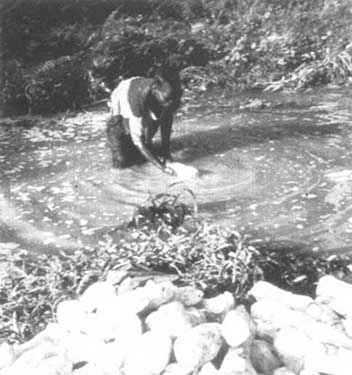 Rouissage en étang - Pond retting of the roots - Maceración de raíces en estanques