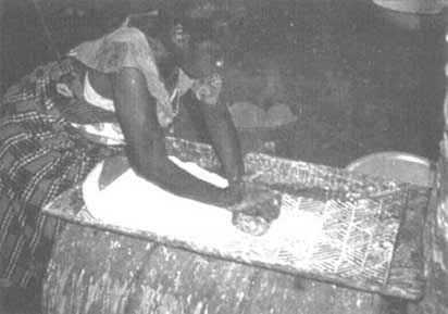 La comparaison des fréquences de consommation à Brazzaville et dans les zones rurales (tableau 1) des produits dérivés du manioc les plus courants permet de constater, d'une part, que la chikwangue7 est légèrement moins utilisée à Brazzaville que dans les villages et les centres secondaires et, d'autre part, que le foufou8 remplace les racines rouies cuites à l'eau lorsque l'on passe des villages aux centres secondaires.