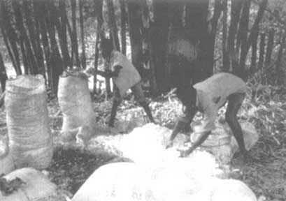 Défibrage des racines rouies - Shredding the retted roots - Desfibrado de raíces maceradas