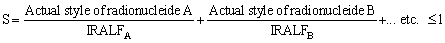 Finally, where two or more radionuclides are found to be present or are so declared at the time of export or import, it is assured that the overall IRALF will be satisfied provided the sum S (see below) is equal to or less than 1. The sum 5 is calculated as follows: