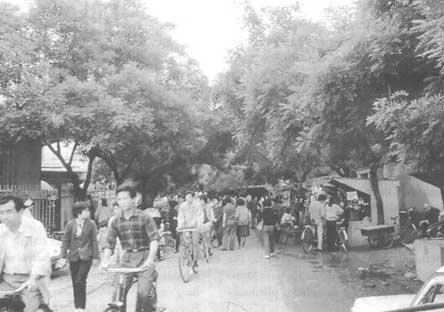 Arboles plantados para dar sombra a un mercado en el centro de Beijing