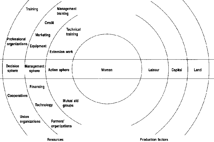 The figure indicates rural women's position in the production system and their degree of access to production factors ( land, capital. Iabour)2 and resources.
