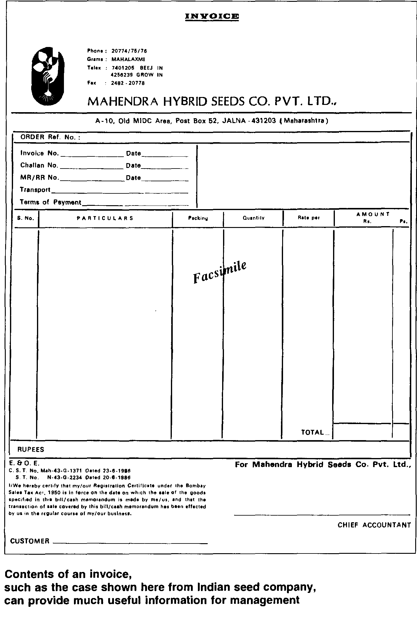 The efficient production of reports depends on sound data collection and handling systems. Computers have become an essential tool but the extent to which information systems are computerized will obviously depend on the size and capacity of the seed company. What is important is that any system should be well designed and based on a complete understanding of the real, not assumed or apparent, needs of individual managers. A Management Information System essentially consists of three phases, inputting the data, processing it and producing the output (see Figure 14). Input data required fore management information system together with the resulting output reports are shown in Figure 15.