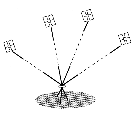 | Receptor del Sistema de Posicionamiento Mundial (SPM) con señales de cuatro satélites | |