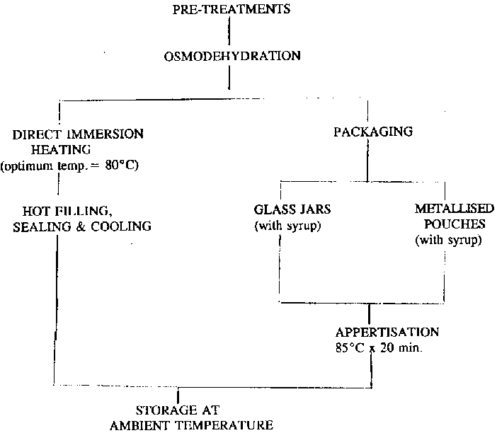 A combination of osmotic dehydration with appertisation has been proposed to improve canned fruit preserves. The feasibility of a process, called osmo-appertisation, to obtain high quality fruit in syrup, has been assessed on a pilot scale.