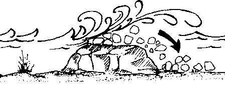 Il est très courant de trouver des récifs le long de certaines côtes et sur les îles coralliennes. En règle générale, un brise-lames ne doit pas être édifié sur le récif, car de grosses vagues pourraient l'arracher (figures 3a et 3b). Outre qu'elles démoliraient le brise-lames, les vagues disperseraient les pierres sur une large zone, ce qui rendrait la navigation dangereuse.