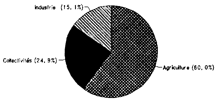 FIGURE 1: Prélèvements en eau (total: 4,5 km³ en 1990)
