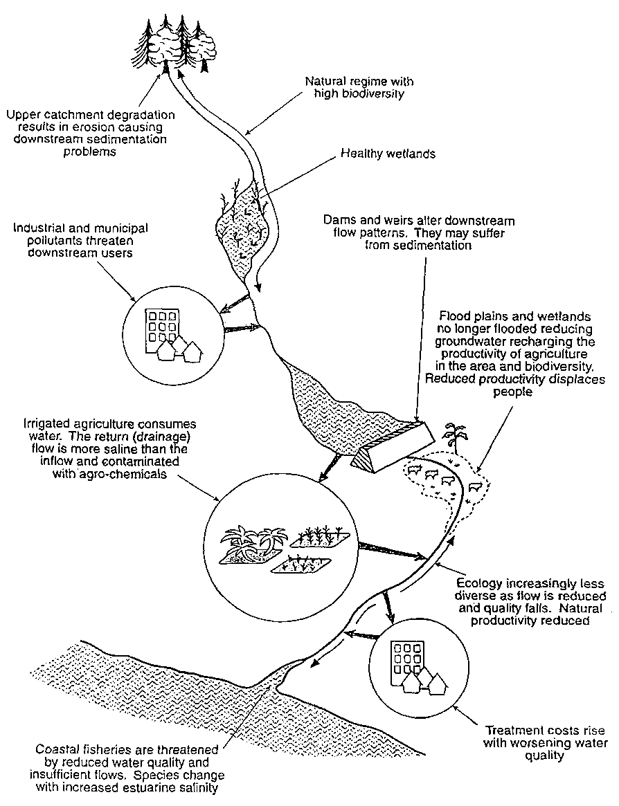 FIGURE 5 Causes and impacts of reduced water quality in a river system
