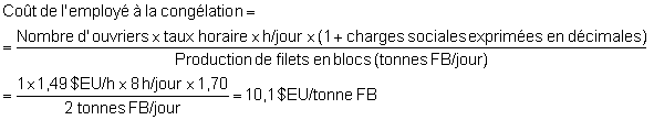 = Quantité de matière première (tonnes de thon/jour) × Prix ($EU/tonne de thon) |