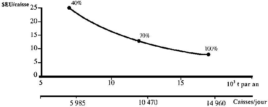 Investissement fixe par jour = IF/Q = 130 000 $EU/250 jours = 250 $EU/jour