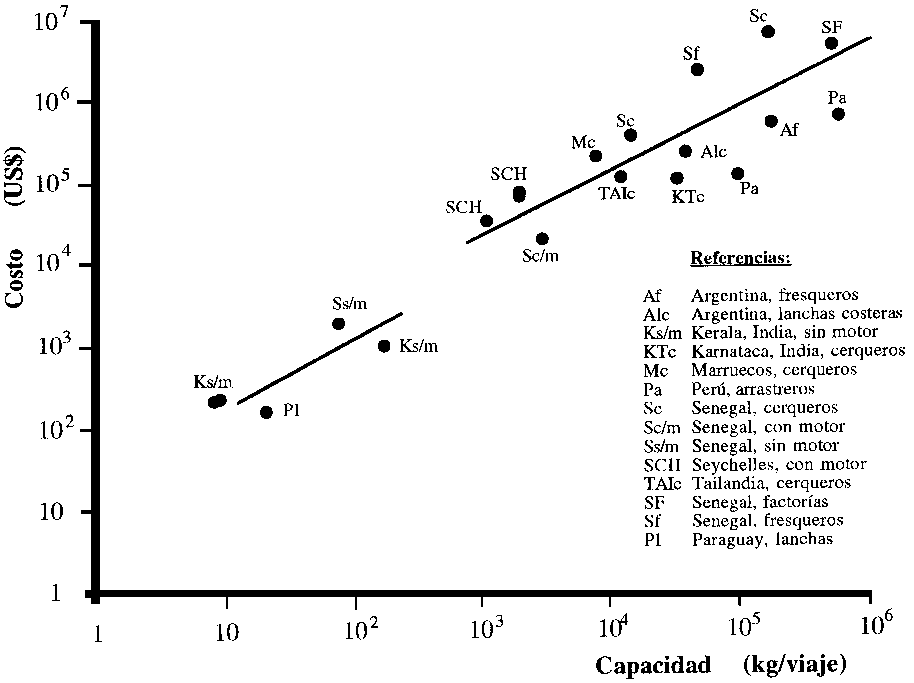 El propósito de los ejemplos 3.1 y 3.2 es explicar y dar los procedimientos prácticos para los cálculos de la inversión de capital. Los métodos descriptos pueden ser aplicados a diferentes tecnologías tanto para plantas integrales de productos congelados, de conservas y de harina de pescado como para plantas individuales, localizadas en zonas industrializadas, o de diferentes tamaños como plantas piloto o de gran capacidad, siempre que el lector siga, entienda y use la información adecuadamente. Las indicaciones sobre el precio, para los equipos y materiales, son sólo estimaciones y la mejor fuente de información será la suministrada por un proveedor con las condiciones de trabajo requeridas. El lector debe adaptar la metodología a su problema particular. Los datos de costos varían con el tiempo, el tamaño del equipo, la ubicación de la planta, el diseño del fabricante, los materiales de construcción, el proceso involucrado y otros factores.