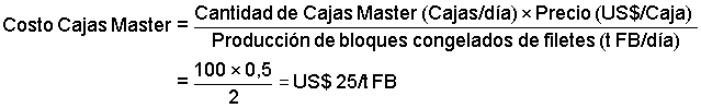 = Cantidad de cajas de cartón (cajas/día) × Precio (US$/caja) = |