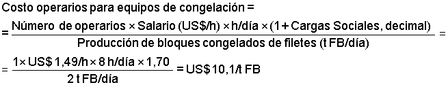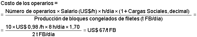Salario básico, con cargas sociales: US$ 10/día (8h por turno) (Del Apéndice C.3)