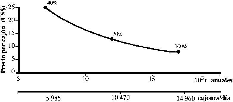 Inversión Fija por día = IF/Q = US$ 130 000/250 días = US$ 520/día