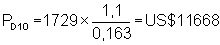 PC10 = 9 000 + (1 200 + 4 440 + 375) × FAP10%,10 = US$ 45 992PD1 = 720 + (750 + 360) × FAP10%,1 = US$ 1 729