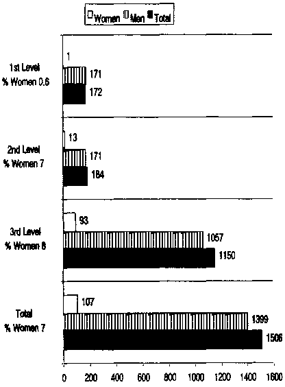 Women in Decision-making Positions in Ministries and Government Bodies. Data on women in decision-making positions in ministries is limited to information from a questionnaire on the first (Director-General, President Board of Directors), second (Head of Department) and third levels of employment, without reference to specific ministries.